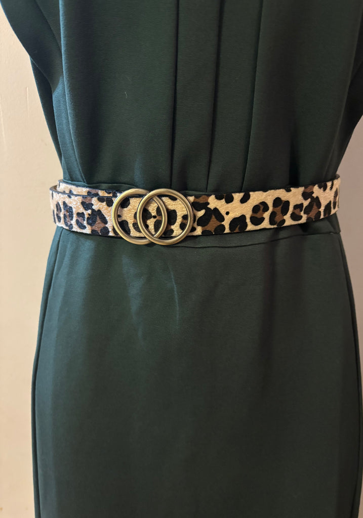 LEOPARD PRINT STYLISH PU LEATHER ACETATE BUCKLE BELT, SIZE M/L