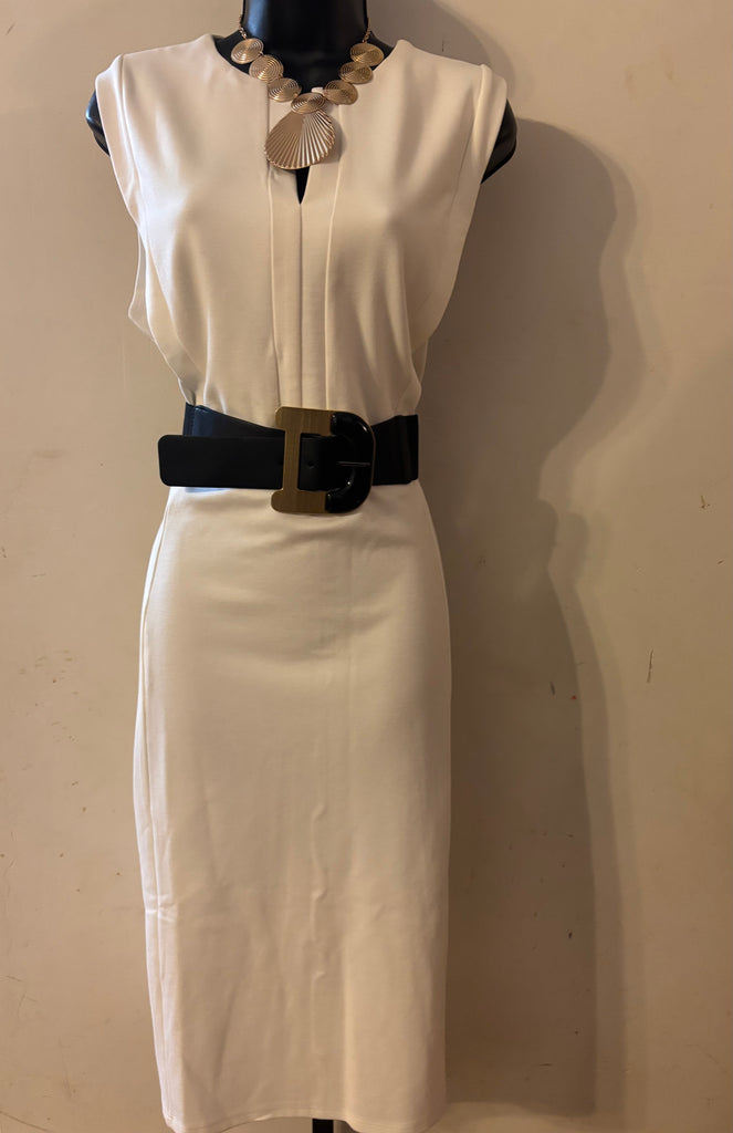CUTE AND COMFORTABLE STRETCHED TWO-TONE FASHION BELT TRIMMED WITH GOLDTONE FINISH.