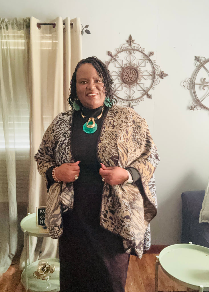 “OPEN SHAWL “, ANIMAL PRINT
