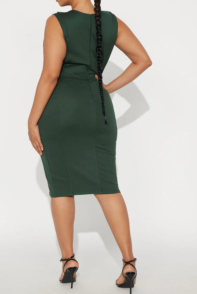 IT’S A BEAUTIFUL SLEEVELESS, SLEEK AND PROFESSIONAL LOOK WHICH FLATTERS YOUR FIGURE WITH ITS STRETCHY AND COMFORTABLE MATERIAL, V-NECK, HIDDEN BACK ZIPPER AND SIDE POCKETS.